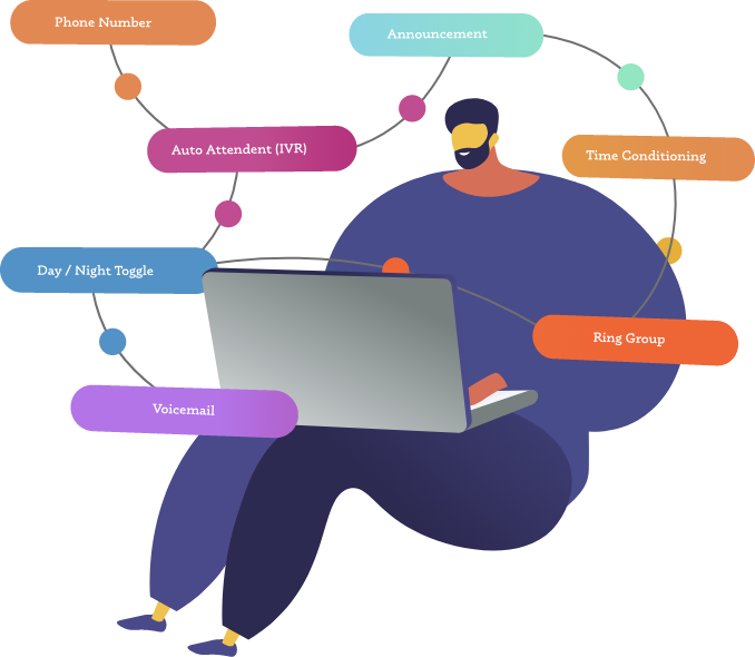 Determine exactly how you wants your calls to flow through your business with simple drag and drop!